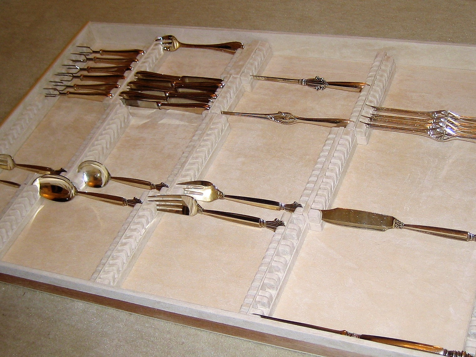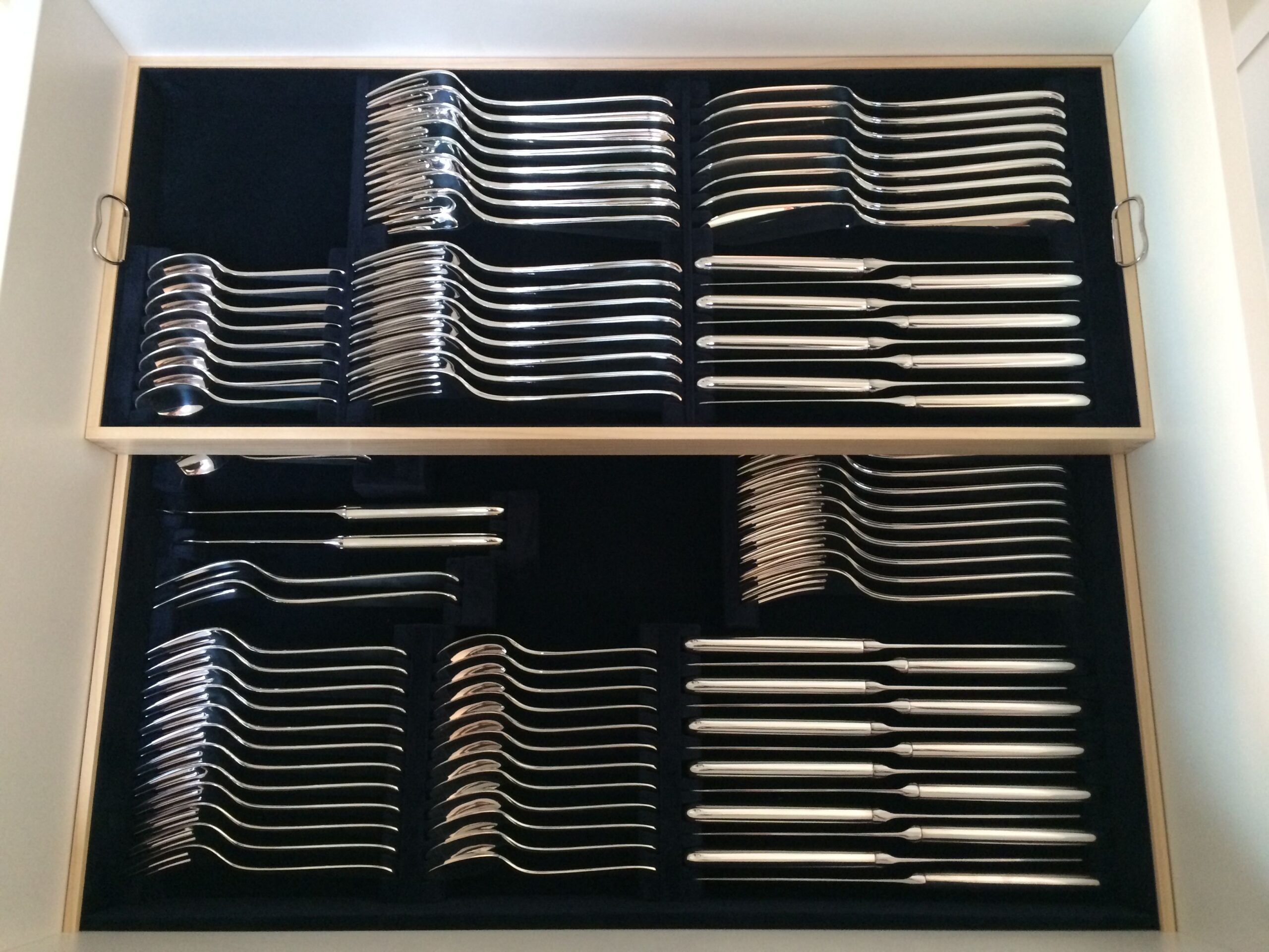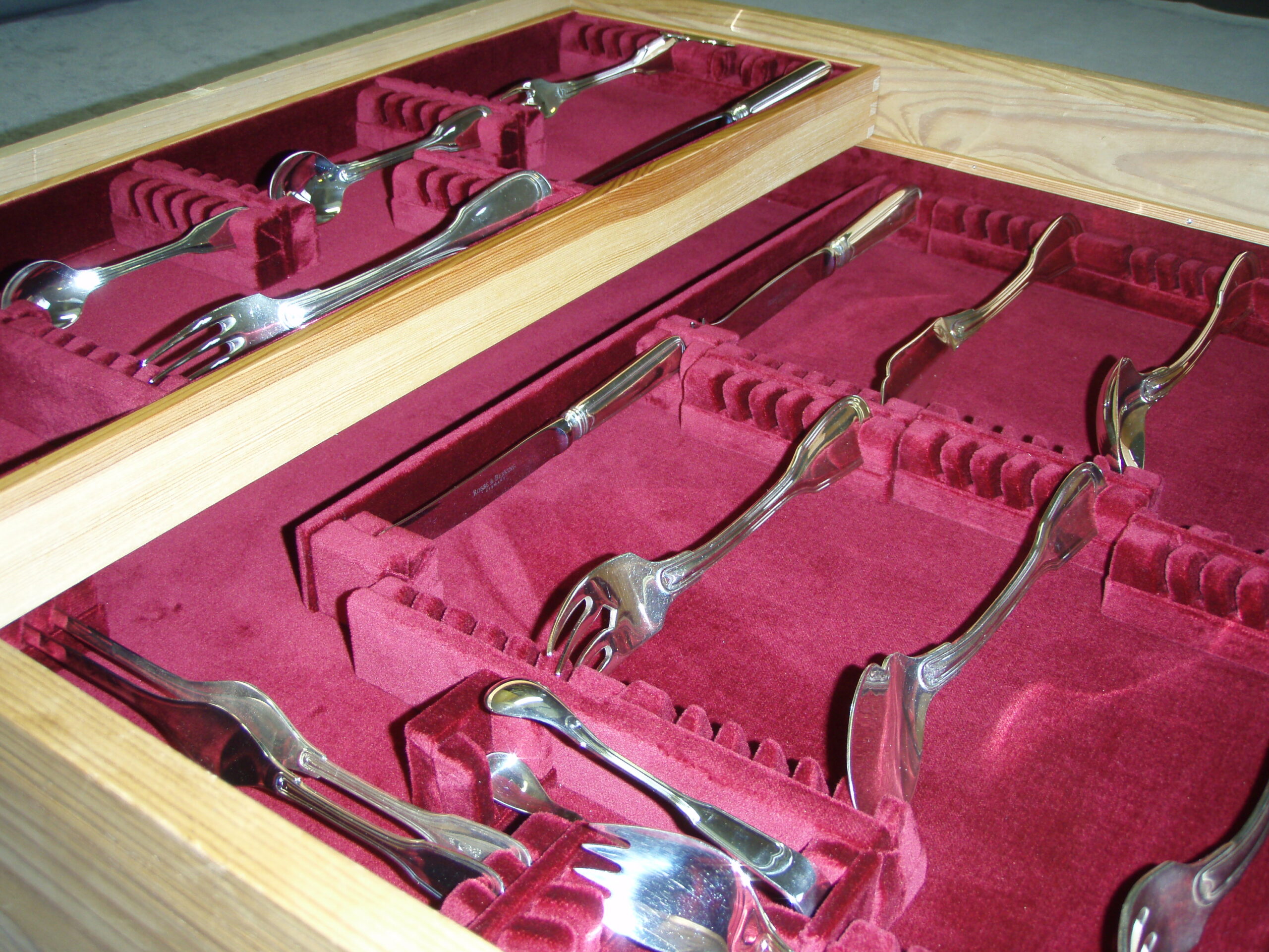 Die Ausführung orientiert sich an den Anforderungen des Kunden sowie an Stil, Charakter und Umfang der Besteckgarnitur. Jeder Besteckkasten wird in klassisch zurückhaltender oder moderner Gestaltung gefertigt und verbindet perfektes Handwerk mit praktischer Nutzbarkeit. Durchdachte Innenfächer, exakte Passformen und eine langlebige Konstruktion sorgen dafür, dass jedes Stück optimal geschützt ist und gleichzeitig eindrucksvoll präsentiert wird.